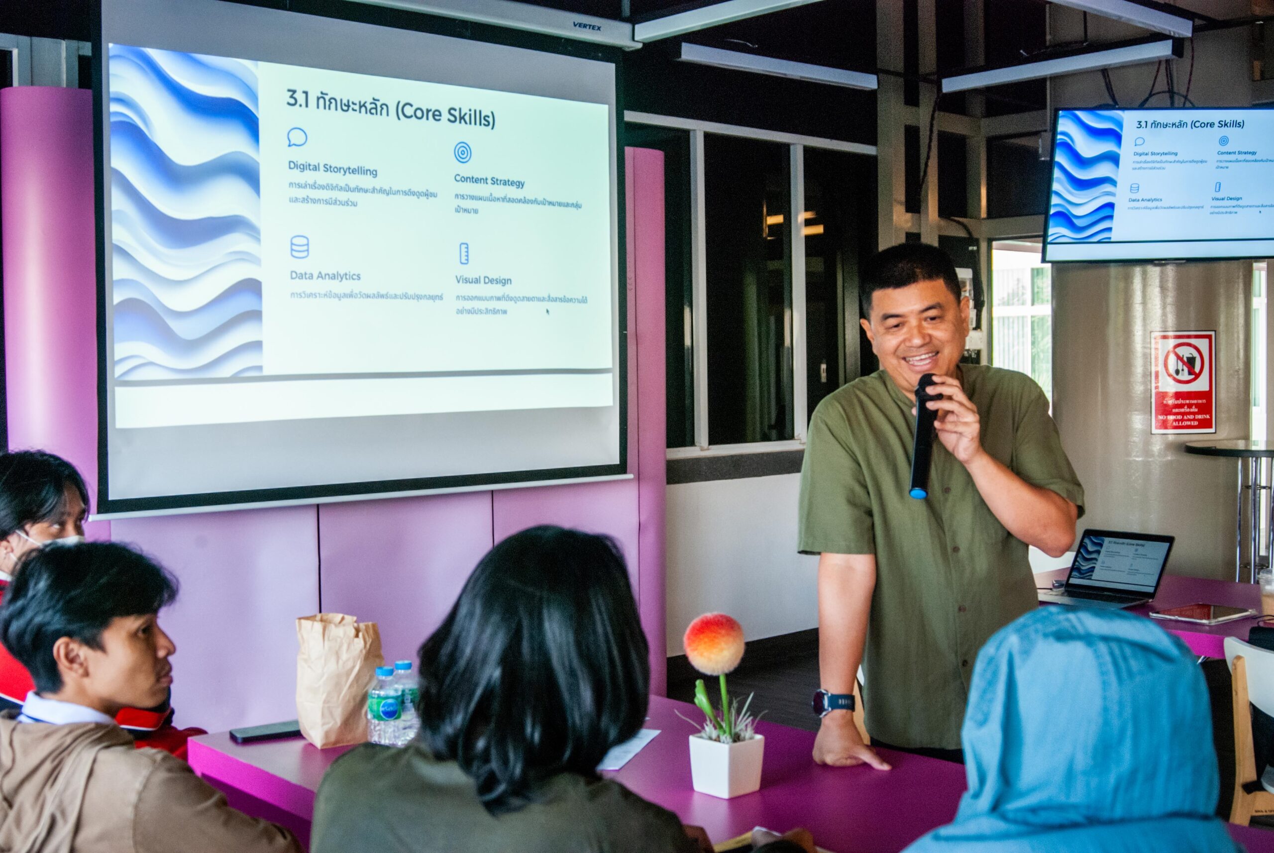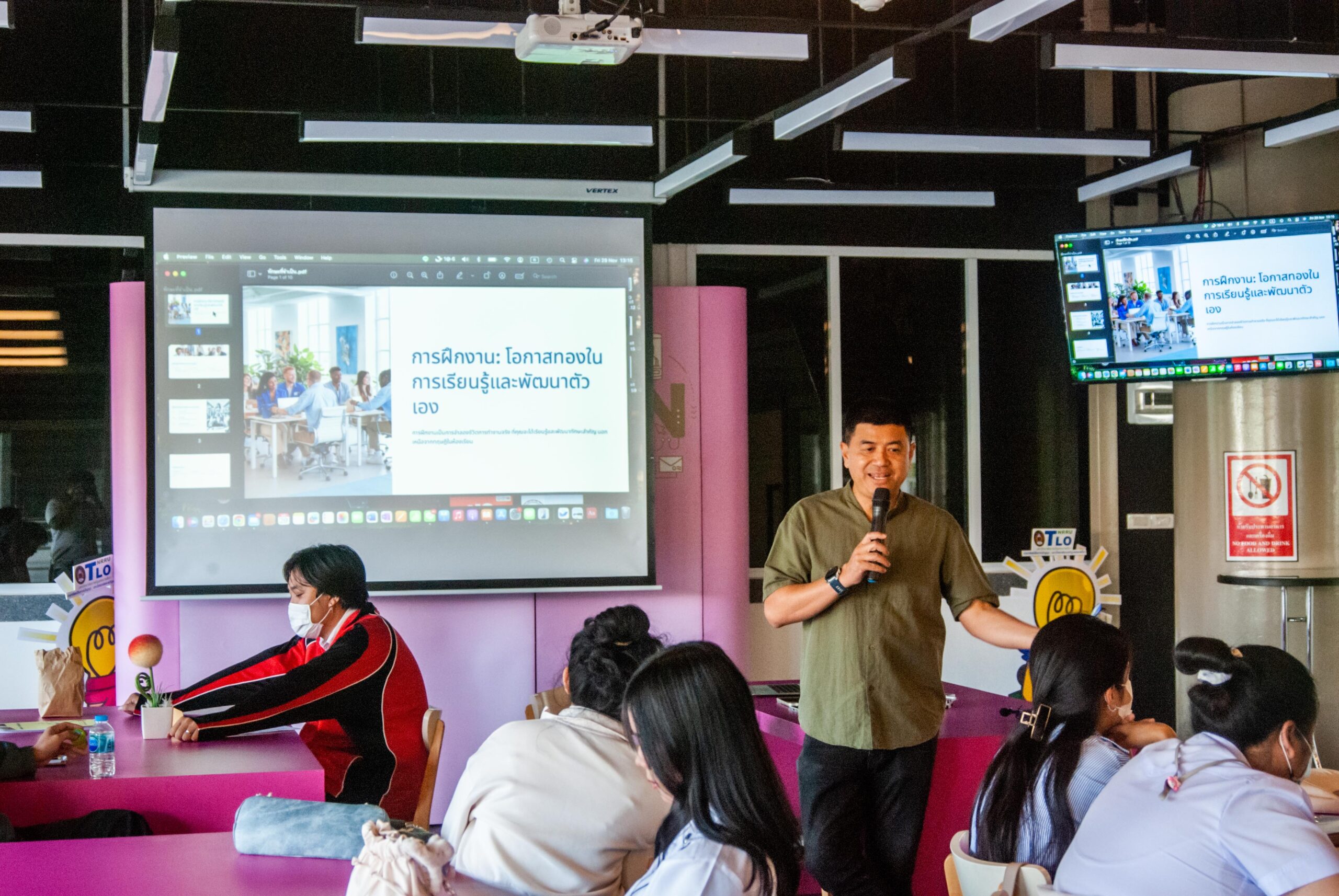 เมื่อวันที่ 29 พฤศจิกายน 2567 ที่ผ่านมา สาขาวิชาเทคโนโลยีดิจิทัลมีเดียได้อบรมเชิงปฏิบัติการตรียมความพร้อมนักศึกษาก่อนออกฝึกประสบการณ์วิชาชีพ ภาคการศึกษาที่ 2 ปีการศึกษา 2567 แก่นักศึกษาชั้นปีที่ 4 และชั้นปีอื่นภายในสาขาวิชา ณ ห้อง NRRU GSB Innovation Center อาคาร 31 ชั้น 2 โดยได้รับเกียรติจากคุณภานุ เล็กสุนทร กรรมการผู้จัดการ บริษัท มอร์ครีเอชั่น จำกัด เป็นวิทยากรถ่ายทอดความรู้แก่นักศึกษา การจัดโครงการในครั้งนี้ ถือเป็นส่วนหนึ่งของรายวิชาการฝึกประสบการณ์วิชาชีพทางเทคโนโลยีดิจิทัลมีเดียซึ่งมีวัตถุประสงค์เพื่อให้นักศึกษาและผู้ที่เข้าร่วมอบรม ได้มีความรู้ความเข้าใจเกี่ยวกับแนวโน้มล่าสุดในอุตสาหกรรมดิจิทัลคอนเทนต์ และความสำคัญของการฝึกประสบการณ์วิชาชีพเป็นการพัฒนาความรู้ เพิ่มพูนความรู้แก่นักศึกษา ได้มีความรู้ด้านทักษะที่สำคัญและการปฏิบัติในที่ทำงาน ความคาดหวังของนายจ้างและการประเมินตนเองเพื่อให้สอดคล้องกับคุณลักษณะบัณฑิตอันพึงประสงค์ของสาขาวิชาชีพ ตลอดจนการแลกเปลี่ยนประสบการณ์จากวิทยากร กับนักศึกษา เพื่อประยุกต์ในการใช้งานในอนาคตต่อไป