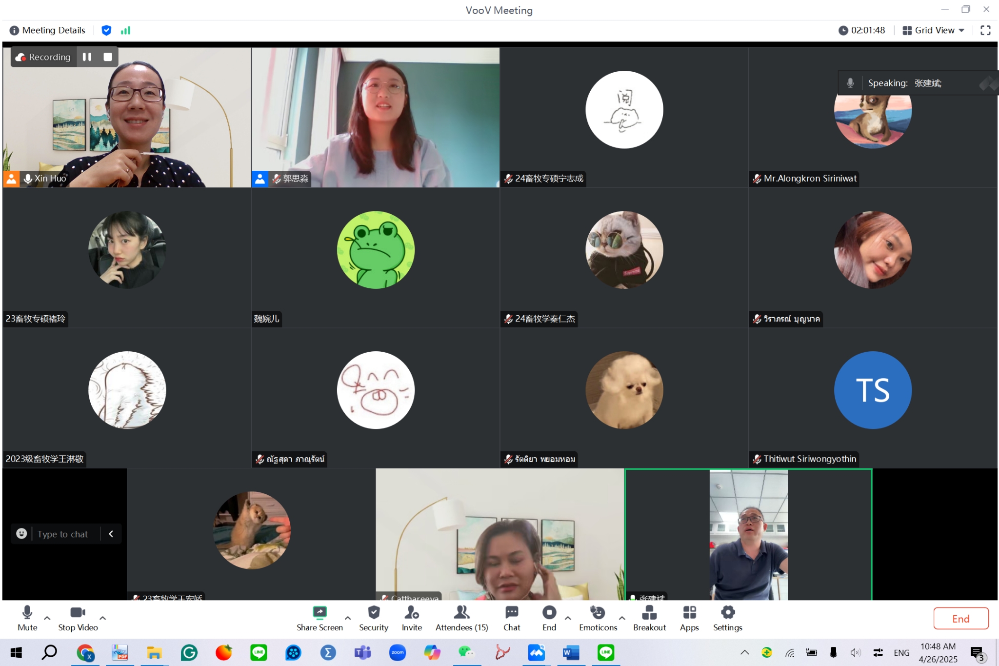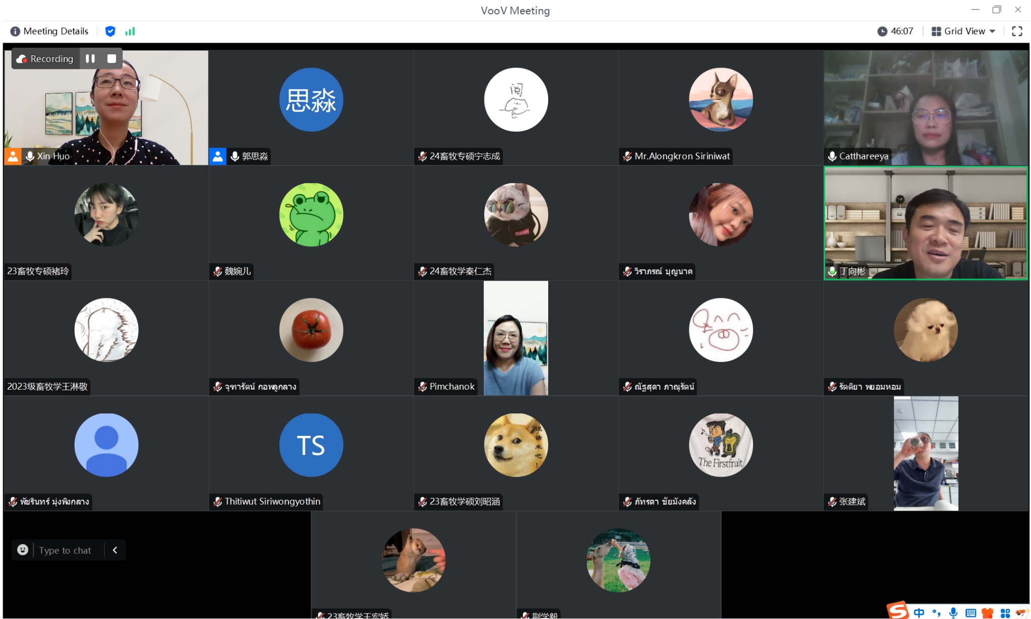 เมื่อวันที่ 26 เมษายน 2568 หลักสูตรเทคนิคการสัตวแพทย์ มหาวิทยาลัยราชภัฏนครราชสีมา (NRRU) ร่วมกับ Collage of Animal Science and Veterinary Medicine of Tianjin Agricultural University (TJAU) ประเทศจีน ได้จัดกิจกรรม Student Webinar ผ่านระบบ VooV Meeting เพื่อเปิดโอกาสให้นักศึกษาได้นำเสนองานวิจัยจากรายวิชาสัมมนา โดย