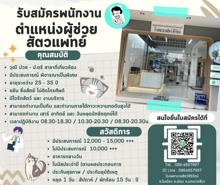 รับสมัครพนักงาน ตำแหน่งผู้ช่วยสัตวแพทย์
